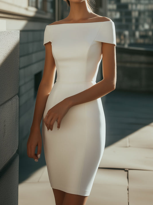 White Satin Bodycon Off The Shoulder Short Graduation Dress