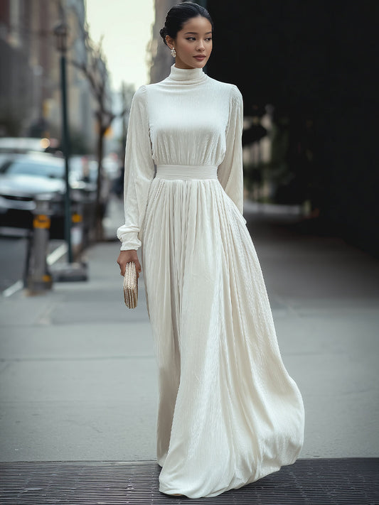 White Satin Asymmetrical High Neck Bodycon Midi Graduation Dress
