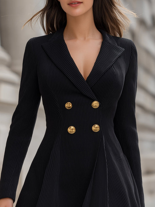 Woven Ribbed Double-Breasted Blazer Mini Dress