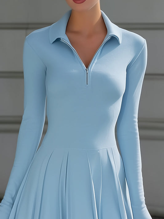 Women’s Light Blue Long Sleeve Pleated Skater Dress