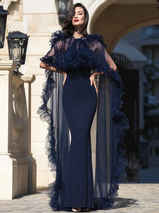 Midnight Velvet Flounce Cuffs Mermaid Gown