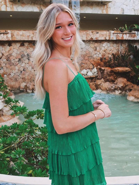 Chic A Line Spaghetti Straps Green Short Homecoming Dress with Ruffles
