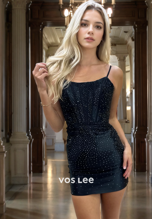Sparkly Sweetheart Sheath&Column Spaghetti Straps Fully Sequin Short Party Homecoming Dress