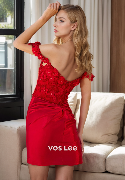 Seductitve Strapless Applique Sheath Off Shoulder Homecoming Dress