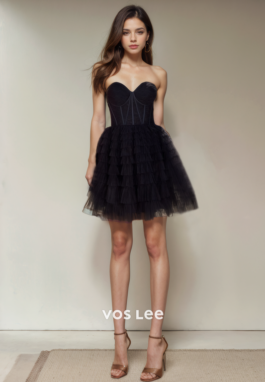 A-Line Pretty Sweetheart Tulle Party Dress Lace Up Tiered Fancy Homecoimg Dresses