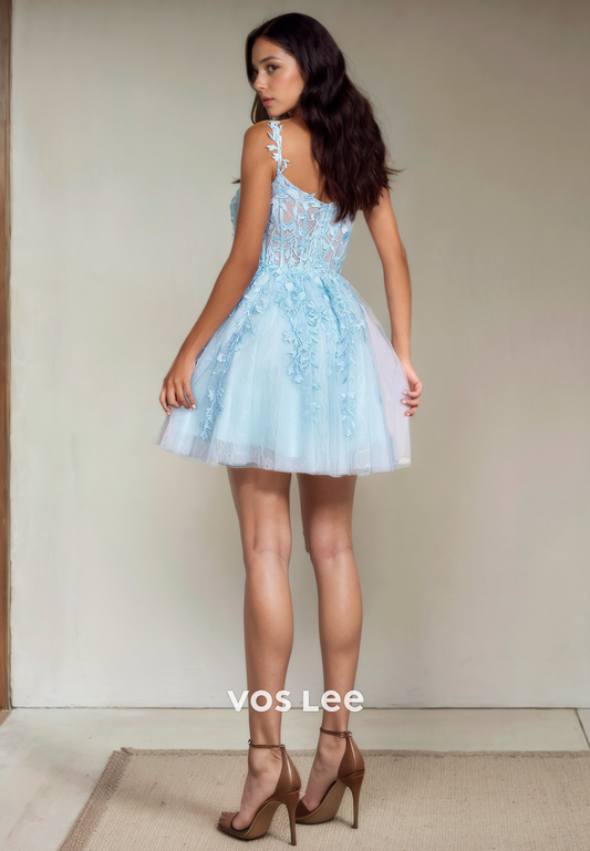 Pretty Sweetheart Lace Short Homecoming Dress Spaghetti Straps Zipper Back Party Dress