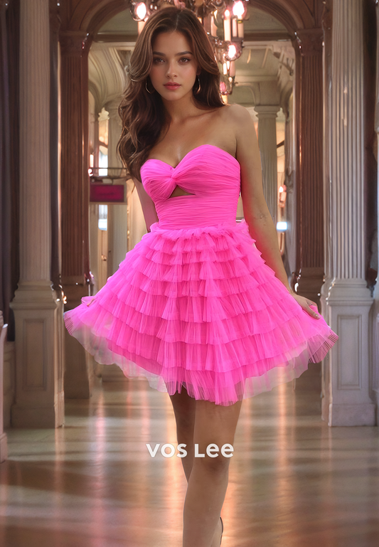 Cute Tulle Dress A-Line Cutout Strapless Sleeveless Homecoimg Dress