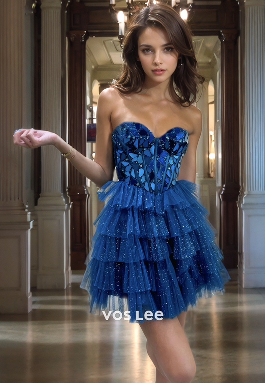 Short Tulle Homecoming Dress Sparkly Sweetheart Sequin Top