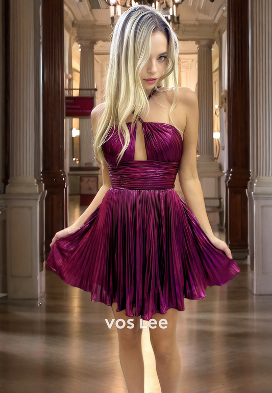 Classy Sparkly A-Line Halter Cutout Pleated Satin Homecoming Dress