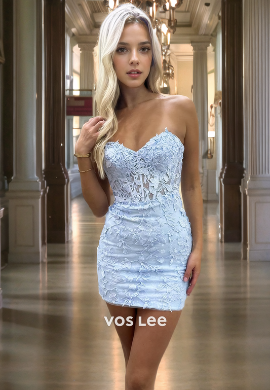 Elegant Sweetheart Applique Lace Strapless Short Graducation Homecoming Dress