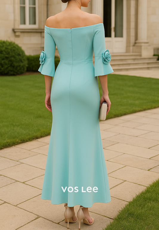 Elegant Trumpet Off Shoulder Hlaf Sleeves Lace Appliques Mother of the Bride Dress