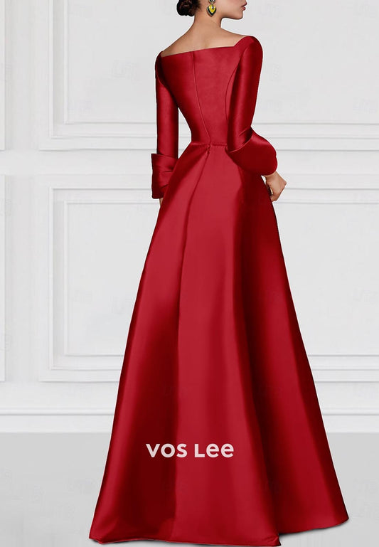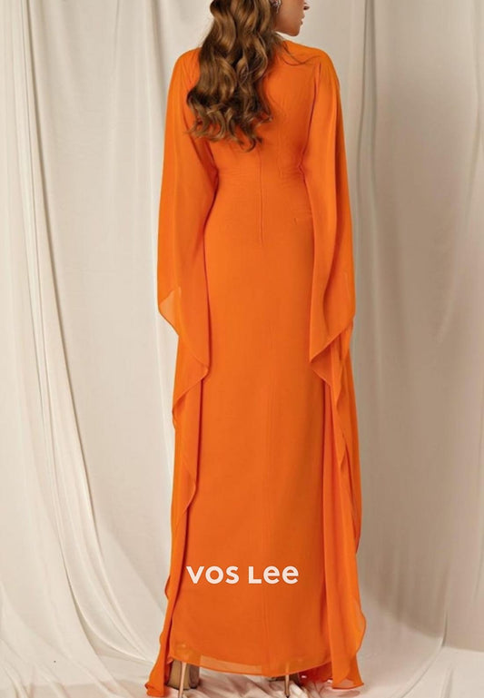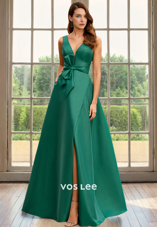 A-Line V Neck Long Sleeves Mother of Bride Evening Dress with High Split