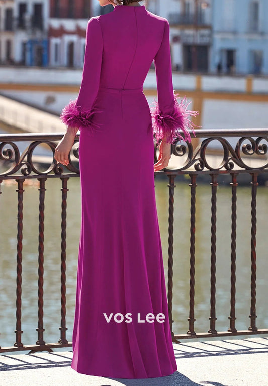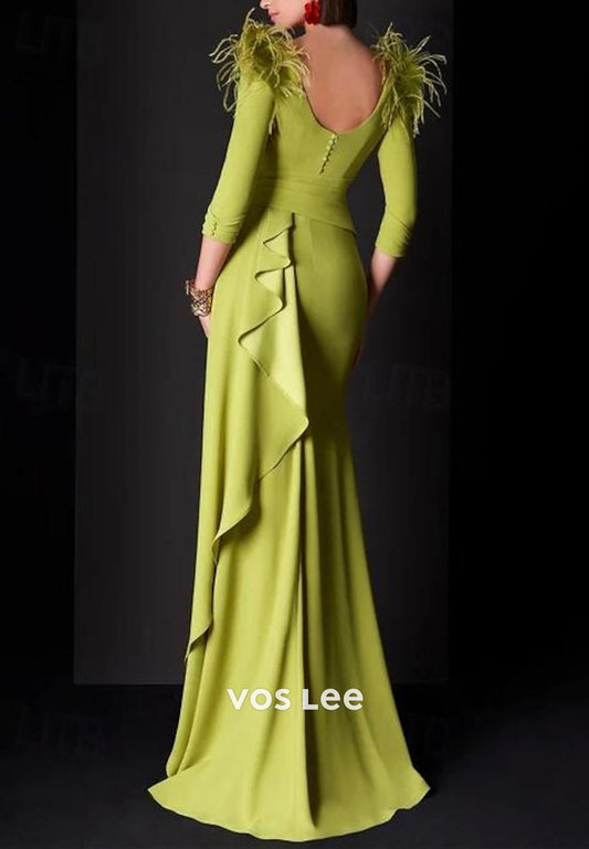 3/4 Sleeve Feather V Neck Floor-Length Mermaid Mother of Bride Dresses