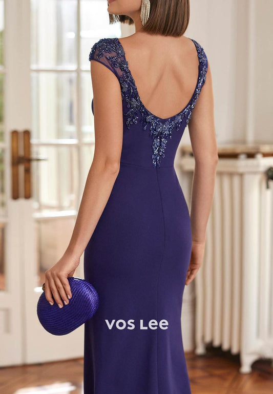 Cap Sleeves Scoop Beaded Embellished Floor-Length Mermaid Mother of Bride Dresses