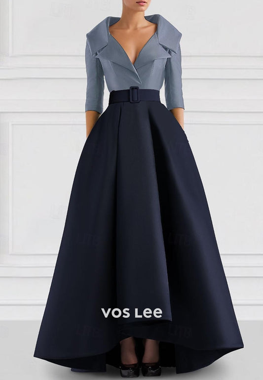 Classic A-Line V-Neck Long Sleeves High Low Evening Formal Dress