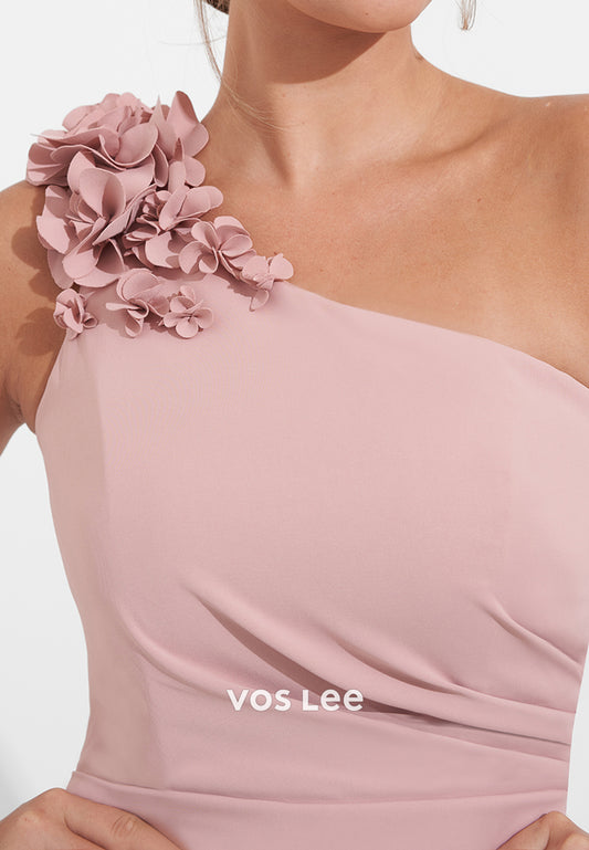One Shoulder Sleeveless Floral Embellished Ruched Mermaid Long Mother of Bride Dresses