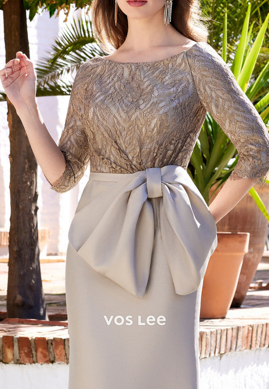 Long Sleeve Square Bowknot Mermaid Formal Dresses Mother of Bride Dresses