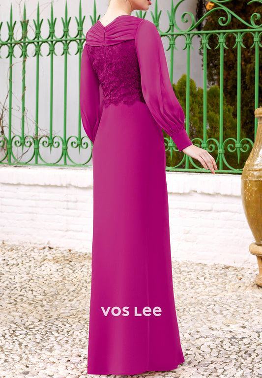 Long Sleeve Floor-Length Mermaid Mother of the Bride Dresses with Side Slit