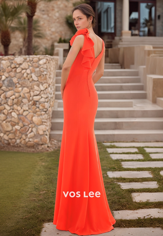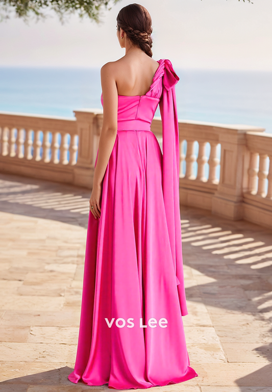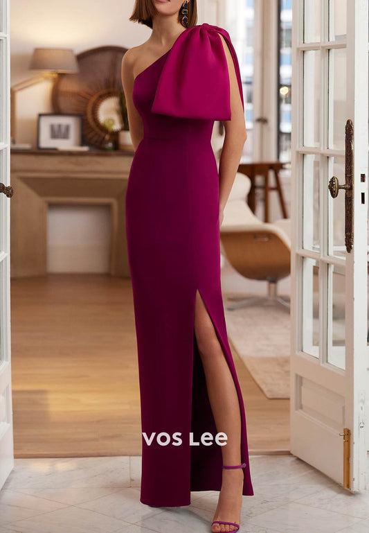 One Shoulder Bowknot Pleated Floor-Length Mermaid Mother of Bride Dresses with Slit