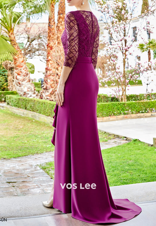 Lace Applique 3/4 Sleeve Mermaid Mother of Bride Dresses with Sweep Train