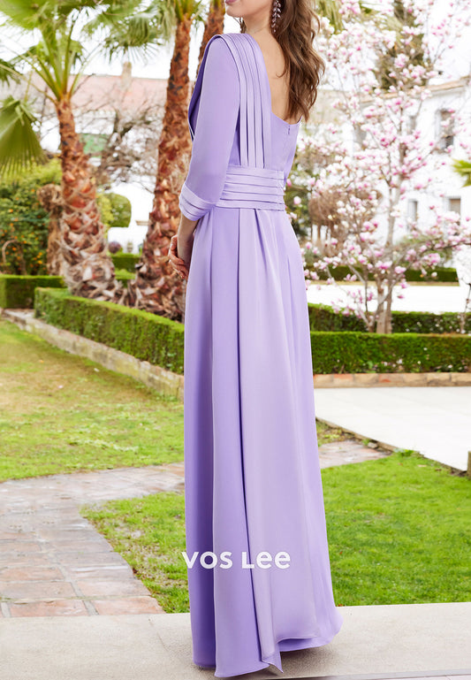 Classic & Timeless A-Line 3/4 Sleeve Scoop Pleated Floor-Length Mother of Bride Dress