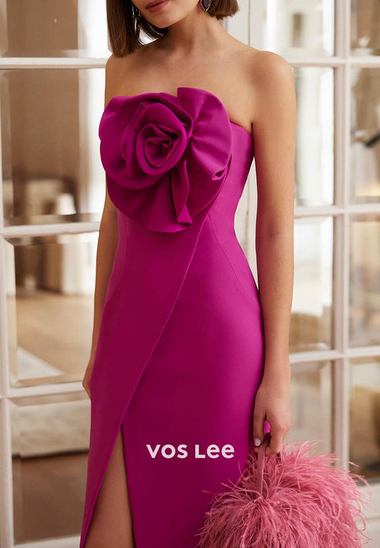 Strapless Flowers Ankle-Length Ruched Mermaid Mother of Bride Dresses with Side Slit