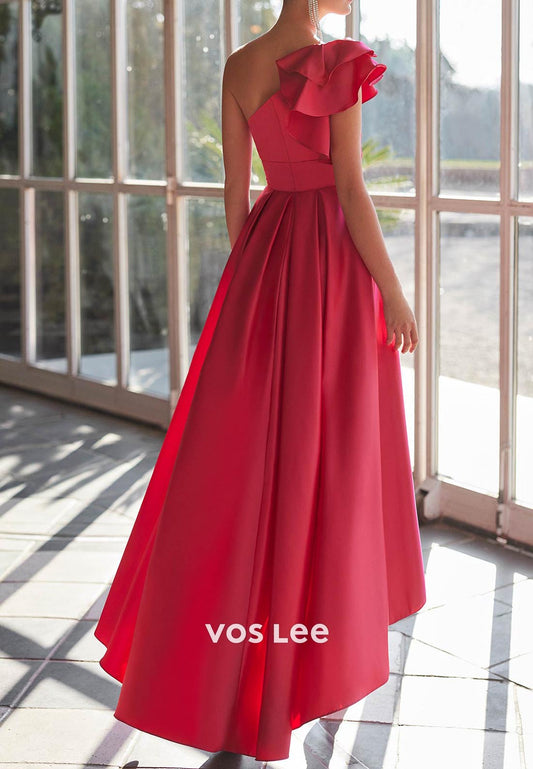 Fashion A-Line High Low One Shoulder Formal Mother of Bride Dresses with Pockets