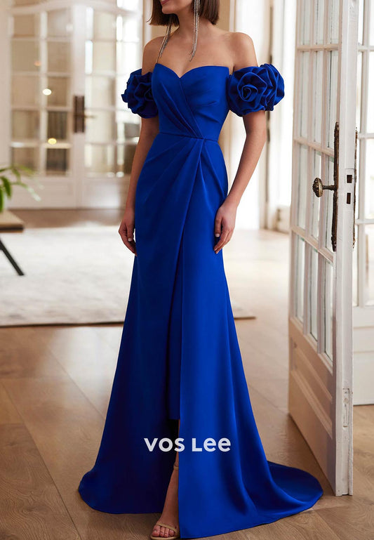 Short Sleeve Sweetheart Pleated Sheath Floor-Length Mother of Bride Dresses with Slit