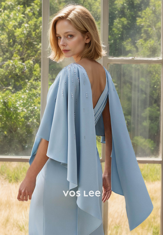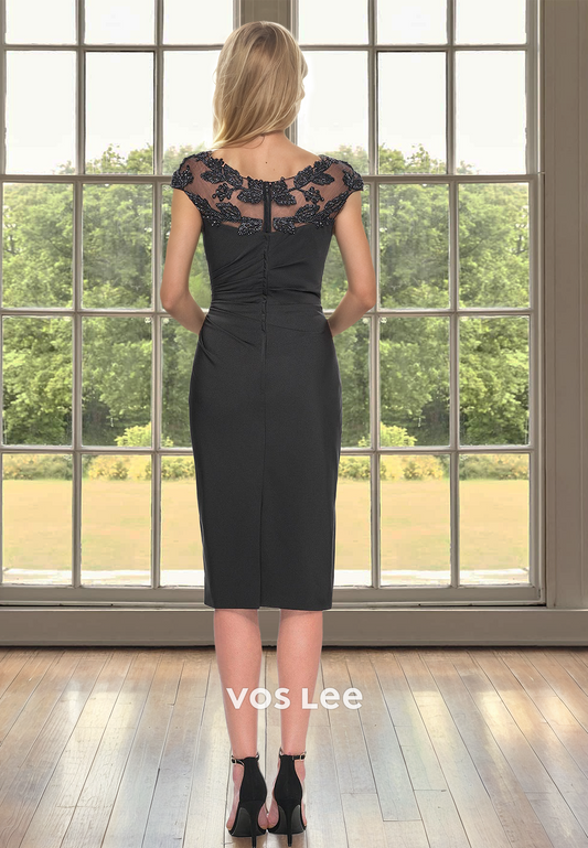 Vintage Column V Neck Cap Sleeves Knee Length Mother of the Evening Dress