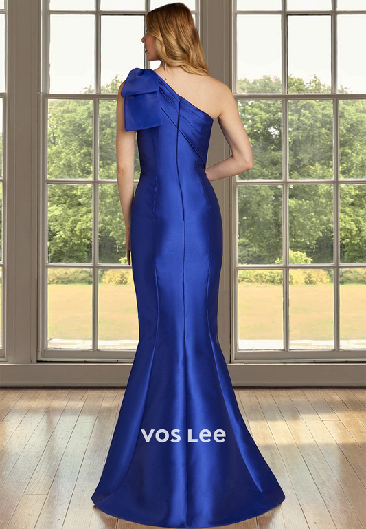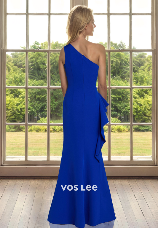 Royal Blue Column One Shoulder Sleeveless Back Zipper Mother of the Evening Dress