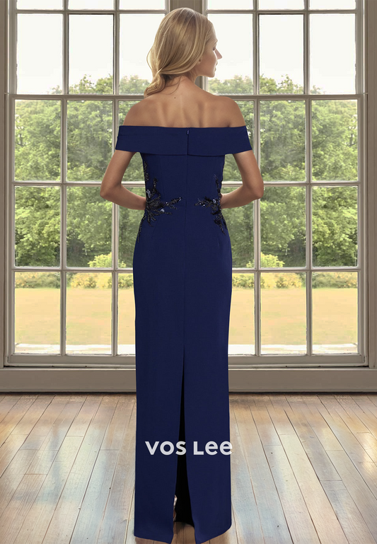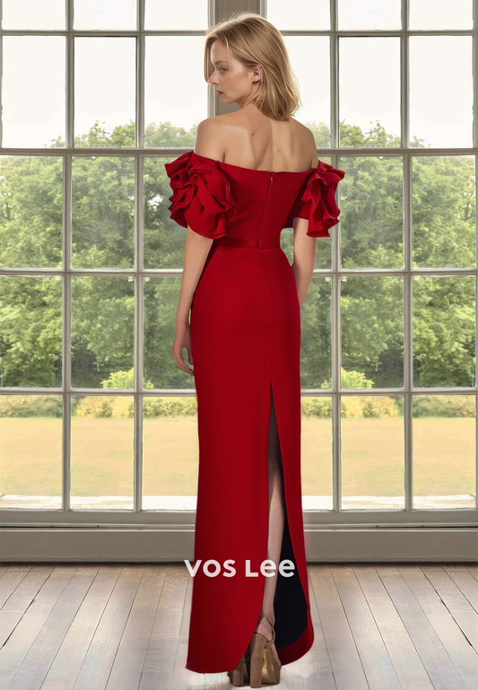 Unique Column Off Shoulder Sleeveless Side Split Ruffled Mother of the Formal Dress