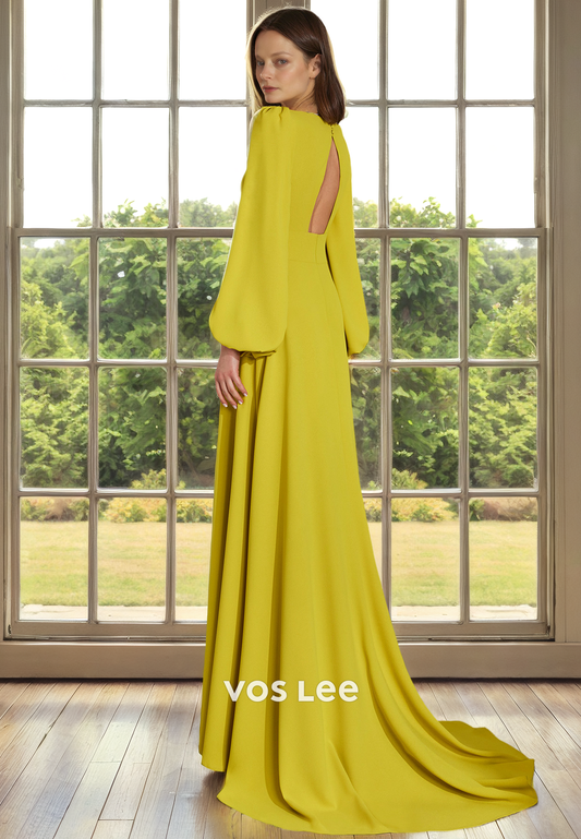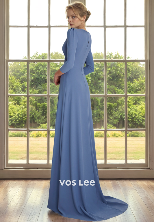 Elegant V Neck Long Sleeves Backless Sweep Train Mother of the Bride Dress with Split