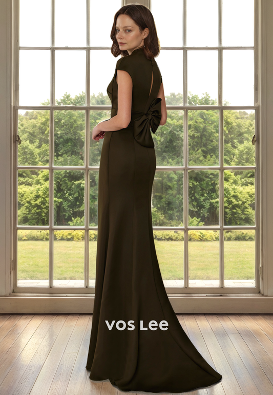 Classy Sheath V Neck Cap Sleeves Sweep Train Bow Mother of the Formal Dress