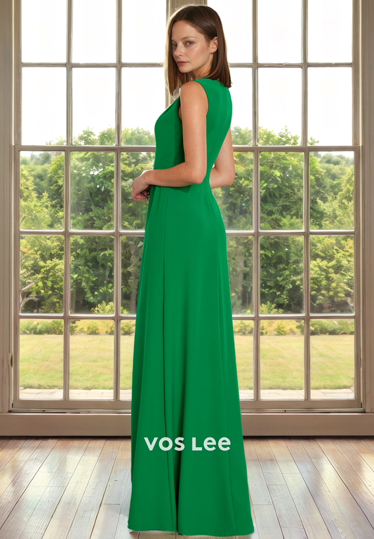 Elegant Sheath V Neck High Split Floor Length Satin Mother of the Bride Dress