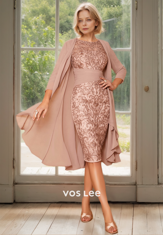 Unique Sheath V Neck Lace Appliques Knee Length Sequins Mother of the Evening Dress