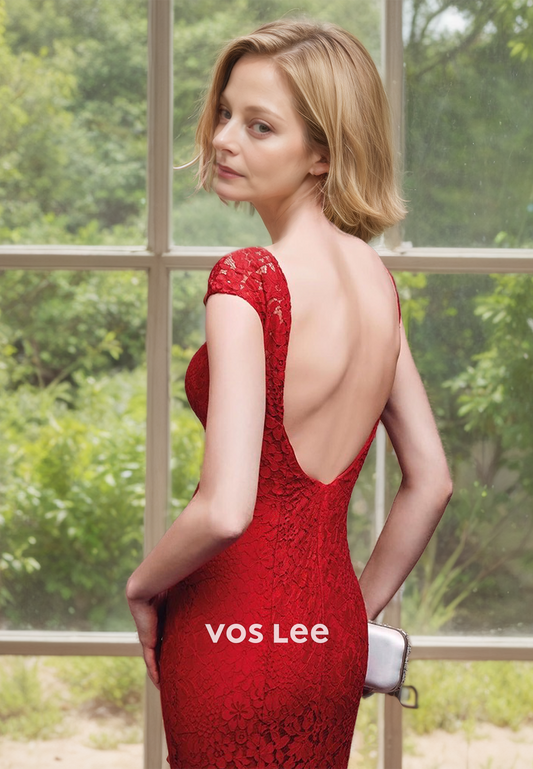 Mermaid Bateau Cap Sleeves Backless Ruched Lace Mother of the Bride Dress