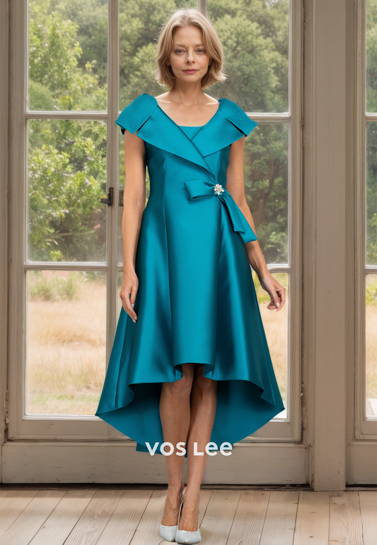 Graceful A-Line V Neck High Low Sleeveless Satin Mother of the Bride Dress