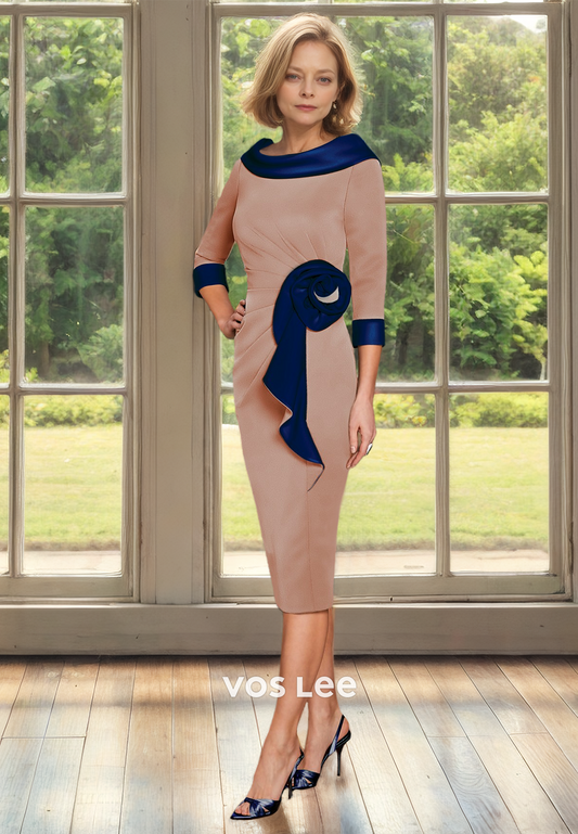 Classy Column Knee Length V Neck Half Sleeves Satin Mother of the Formal Dress