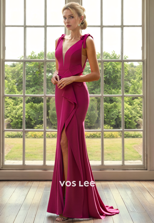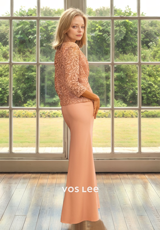 Modest Mermaid Straps Side Split Scoop Floor Length Mother of the Bride Dress