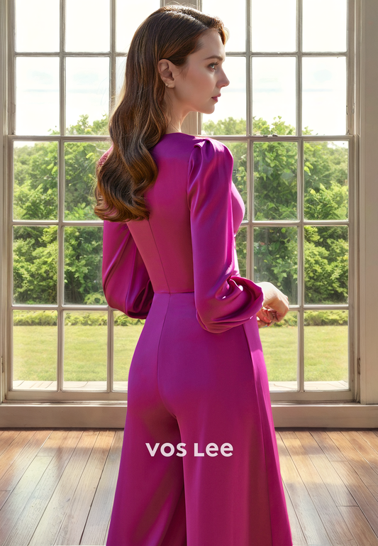 V Neck Modest Full Sleeves Mother of the Pant Suits Formal Occasion Party