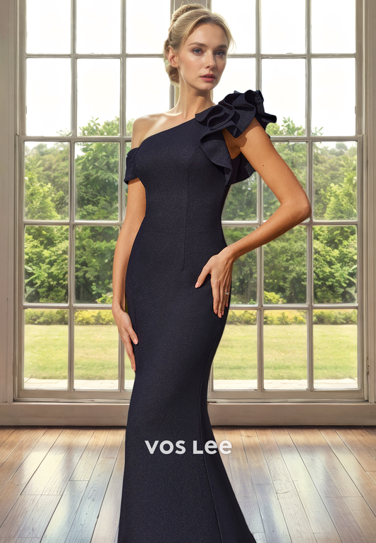 Modest One Shoulder Floor Length Mother of the Bride Dress Mermaid Elegant Party Dress
