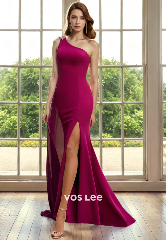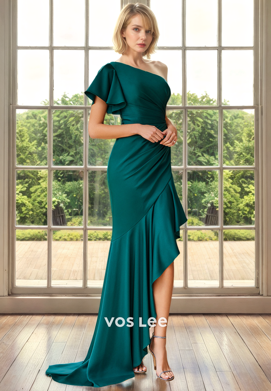 Elegant One Shoulder Side Split Mermaid Formal Mother of the Bride Dress Floor Length