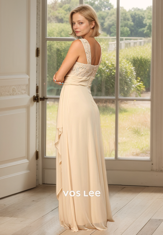 Classy Charming Lady Spaghetti Straps Chiffon Lace Floor Length Mother of the Bride Dress