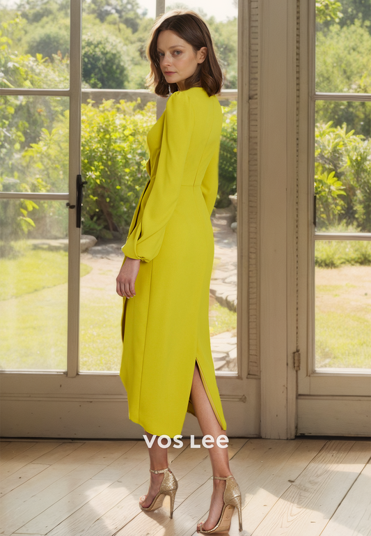 Elegant Knee Length V Neck Pleated Formal Mother of the Bride Dresses with Long Sleeves