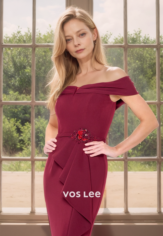 Elegant Burgundy Off-Shoulder Mermaid Mother of the Bride Dresses Floor Length