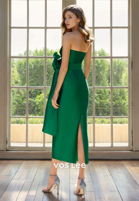 Unique Sweetheart Green Off Shoulder Tea Length Satin Mother of the Bride Dresses
