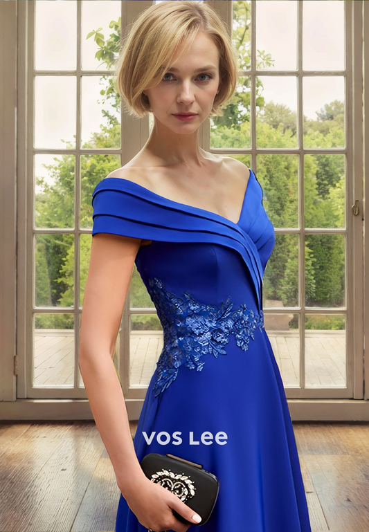 A-Line Off Shoulder Tea-Length Mother of th Bride Dress with Appliques