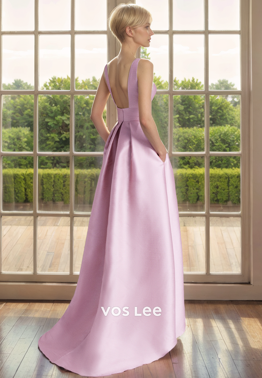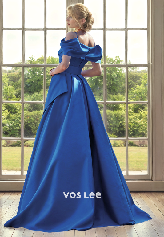 A-Line V-Neck Off Shoulder Sweep Train Satin Mother of the Bride Dress/Cocktail Dress