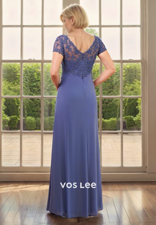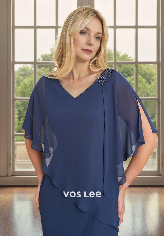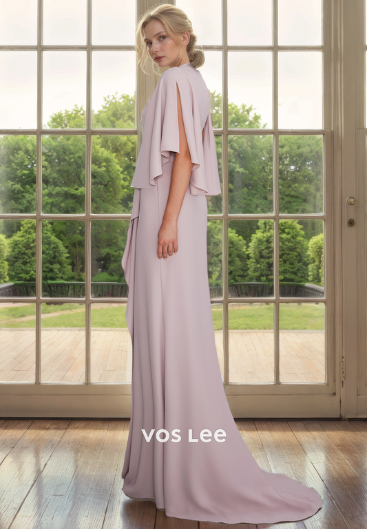 Sheath/Column V-Neck Bat Sleeves Floor-Length Chiffon Mother of the Bride Dress with Slit