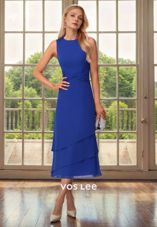 A-Line Round Sleeveless Tea-Length Chiffon Mother of the Bride Dress/Cocktail Dress